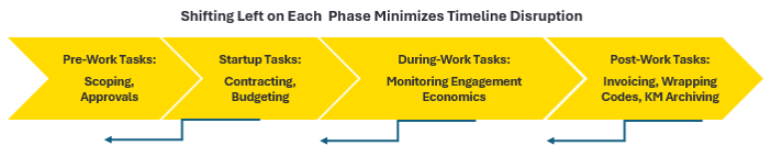 One definitional aspect of project management is ownership: the Project Manager “owns” the project, the success of the project depends on the PM and continued success defines the PM’s career. All too often in business operations we don’t take any ownership. Partners and Managers come to us for administrative help on individual tasks, and once we’ve completed the task we move on. Full lifecycle operations support is about owning the process end to end, planning ahead and accounting for roadblocks that are outside your control. Does your preliminary Client research show you that you’ll need an additional layer of internal approvals? Where can you shift left to make up for the extra day or two you’ll lose while that team does their approval? Are there calls you can make or extra work you can put in to make that approval move faster? What if your India team gets document drafts ready ahead of time, ready for the key scope elements and dates to be added in later? When a BizOps professional is responsible for that project starting on time, staying on top of engagement economics and invoicing promptly after work has wrapped, the client-facing team can focus on the core work product, and valuable time isn’t wasted on process tasks that the team is unaccustomed to. The client team wins because they can focus on what they do best, and the company wins because compliance, risk aversion and financial controls are all managed expertly.